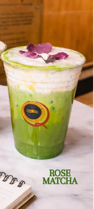 Premium matcha layered with rose-infused milk and finished with a delicate rose cold foam and petals.